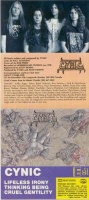 *Year: 1990 *Genre: Thrash Metal/Death Metal *Country: United States (IMG:http://metalarea.org/forum/style_images/flags/United%20States.png) *Format: mp3@CBR160kbps (IMG:http://metalarea.org/images/bit_low.gif) *Size: 16MB Tracklist: 1. Lifeless Irony 2. Thinking Being 3. Cruel Gentility ****************************** Total playing time: 13:38 Extended info Cover Art by Jose Perez. Recorded at Morrisound Studios. Engineered by Scott Burns. Produced by Cynic and Scott Burns. Paul Masvidal - Guitar, Vocals Jason Gobel - Guitar Tony Choy - Bass Sean Reinert - Drums Register